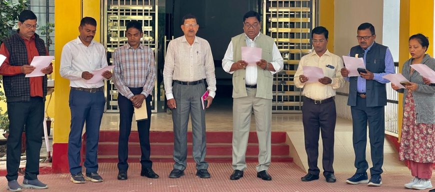 संविधान वाचन के बाद अधिकारियों और कर्मचारियों ने संवैधानिक मूल्यों को अपने कार्यों और आचरण में उतारने का संकल्प लिया। इस मौके पर डिप्टी कमिश्नर श्री बीएस सिदार एवं गीता रायस्त सहित कमिश्नर कार्यालय और कोष-लेखा एवं पेंशन, छत्तीसगढ़ ग्रामीण सड़क विकास अभिकरण, ग्रामीण यांत्रिकी सेवा, उद्यानिकी विभाग के अधिकारी-कर्मचारी मौजूद रहे।
