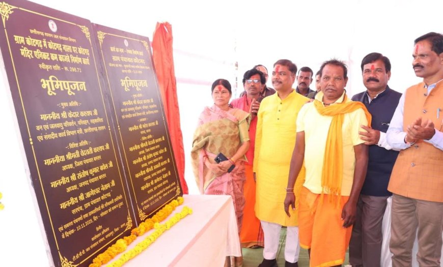 जिसकी अनुमानित लागत लगभग 298.50 लाख रुपए है। इसी प्रकार पखनाकोंगेरा में मावली माता मंदिर के पास एनिकट निर्माण तथा जल संरक्षण संबंधी कार्यों की आधारशिला रखी गई, जिनकी लागत लगभग 298.71 लाख रुपए निर्धारित की गई है। कोटगढ़ ग्राम पंचायत में राजेपारा मार्ग एवं नाली निर्माण कार्यों के साथ-साथ जलस्रोतों के सुदृढ़ीकरण की योजनाओं का शुभारंभ हुआ, जबकि तुरपुरा-1 में हाई स्कूल के सामने पुलिया निर्माण और तालाब गहरीकरण जैसे कार्यों का भूमिपूजन किया गया, जिनकी कुल लागत लगभग 5.30 लाख रुपए है।