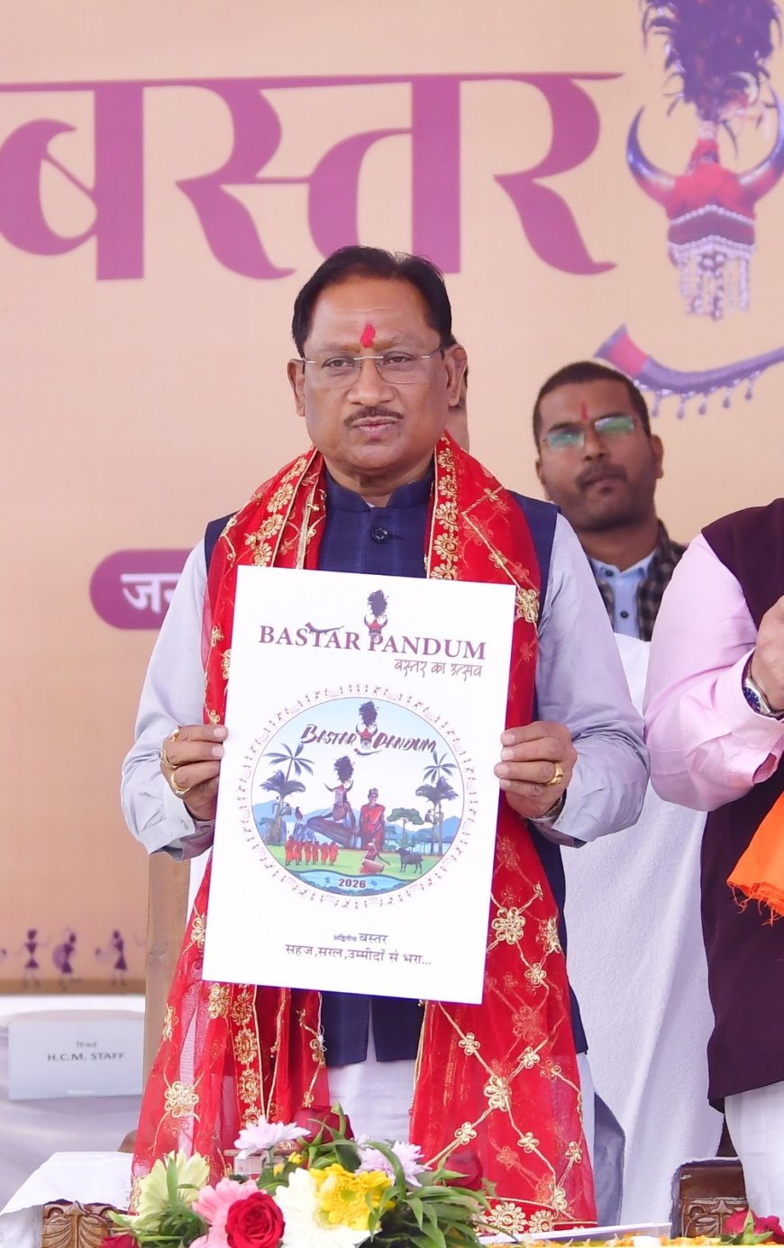 इस अवसर पर मुख्यमंत्री श्री साय ने नववर्ष की हार्दिक बधाई एवं शुभकामनाएँ देते हुए कहा कि बस्तर पंडुम, बस्तर की असली आत्मा और सांस्कृतिक विरासत का सशक्त मंच है। आज माँ दंतेश्वरी के इस पावन प्रांगण से बस्तर पंडुम-2026 का शुभारंभ हो रहा है। यहाँ बस्तर पंडुम-2026 का “लोगो” और “थीम गीत” का विमोचन किया है। बस्तर पंडुम सिर्फ एक उत्सव नहीं, बल्कि बस्तर की आत्मा है। हमारी समृद्ध जनजातीय संस्कृति, लोक-परंपराओं, कला और विरासत का मंच है। छत्तीसगढ़ की असली पहचान हमारी आदिवासी परंपराओं में है। हम नृत्य, गीत, शिल्प, व्यंजन, वन-औषधि और देवगुडि़यों के जरिए इन परम्पराओं और संस्कृति को जीते हैं। पिछले साल हमने बस्तर पंडुम की शुरुआत की थी,तब समापन अवसर पर केन्द्रीय गृहमंत्री श्री अमित शाह भी हम सबके बीच आए थे।
