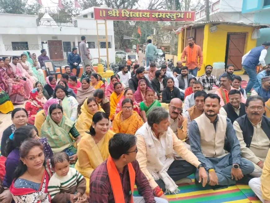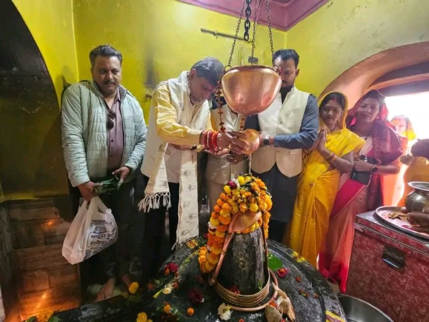 भाजपा प्रदेश अध्यक्ष किरण सिंह देव ने महादेव घाट शिवमंदिर में कार्यकर्ताओं के साथ किया जलाभिषेक, ओंकार मंत्र का 101 सामूहिक जाप किया