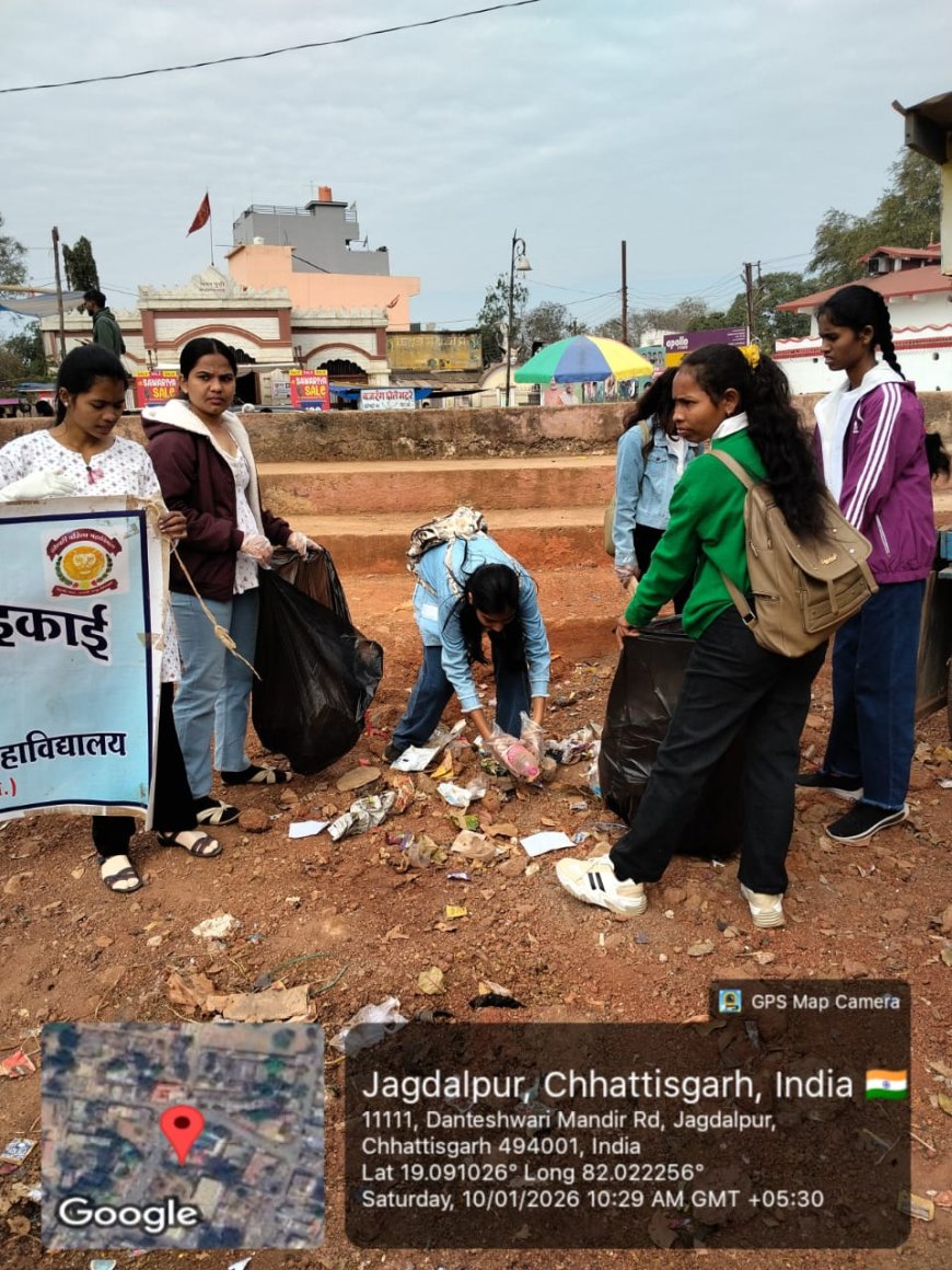 कार्यक्रम की अगली कड़ी में सेवा भावना का अनूठा उदाहरण पेश करते हुए लगभग 330 स्वयंसेवकों ने मंदिर परिसर और ऐतिहासिक राजमहल परिसर के आसपास सघन सफाई अभियान चलाया। हाथों में स्लोगन बोर्ड और नारों के साथ स्वयंसेवकों ने रैली निकालकर शहरवासियों को स्वच्छता और नशे की लत से दूर रहने का संदेश दिया। इस दौरान जन-जागरूकता को और प्रभावशाली बनाने के लिए शासकीय दंतेश्वरी कन्या महाविद्यालय की छात्राओं द्वारा दो महत्वपूर्ण विषयों पर नुक्कड़ नाटक प्रस्तुत किए गए। पूजा सेठिया, हेतल सलाम और उनकी टीम ने साइबर सुरक्षा पर केंद्रित नाटक के माध्यम से डिजिटल ठगी के खतरों को उजागर किया, जिसे उपस्थित जनसमूह ने खूब सराहा और मुख्य अतिथि द्वारा उन्हें पुरस्कृत भी किया गया। वहीं, रामबती कश्यप और सुमित्रा बघेल की टीम ने नशा मुक्ति पर आधारित मार्मिक नाटक प्रस्तुत कर युवाओं को व्यसनों से दूर रहने की प्रेरणा दी।