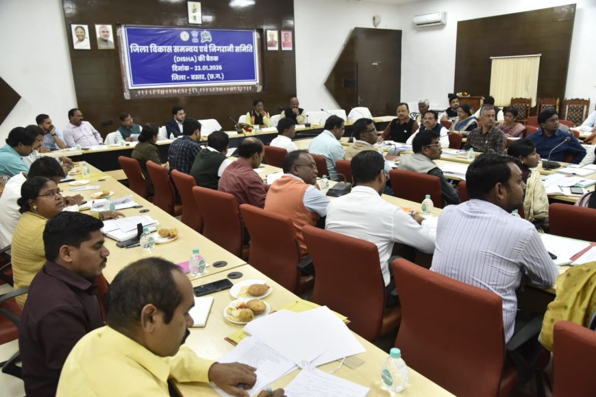 जगदलपुर, 23 जनवरी 2026/ जिले के सर्वांगीण विकास के लिए केंद्र एवं राज्य शासन की जनकल्याणकारी योजनाओं को समाज के अंतिम व्यक्ति तक पहुँचाने के सभी विभागों के अधिकारी आपसी समन्वय के साथ दायित्व निभाएं। विशेष तौर पर जिले के अंदरूनी इलाकों में योजनाओं के कारगर क्रियान्वयन सहित मूलभूत सुविधाओं की उपलब्धता पर ध्यान केंद्रित करें। यह बात सांसद बस्तर श्री महेश कश्यप ने शुक्रवार को कलेक्टोरेट के प्रेरणा कक्ष में आयोजित जिला विकास समन्वय एवं निगरानी समिति की बैठक के दौरान कही। बैठक में नगर पालिक निगम के अध्यक्ष श्री खेमसिंह देवांगन सहित जिला विकास समन्वय और निगरानी समिति के सदस्य जनप्रतिनिधी, सीईओ जिला पंचायत श्री प्रतीक जैन, डीएफओ श्री उत्तम गुप्ता, अपर कलेक्टर श्री सीपी बघेल, सहायक कलेक्टर श्री विपिन दुबे तथा विभिन्न विभागों के जिला स्तरीय अधिकारी मौजूद रहे।