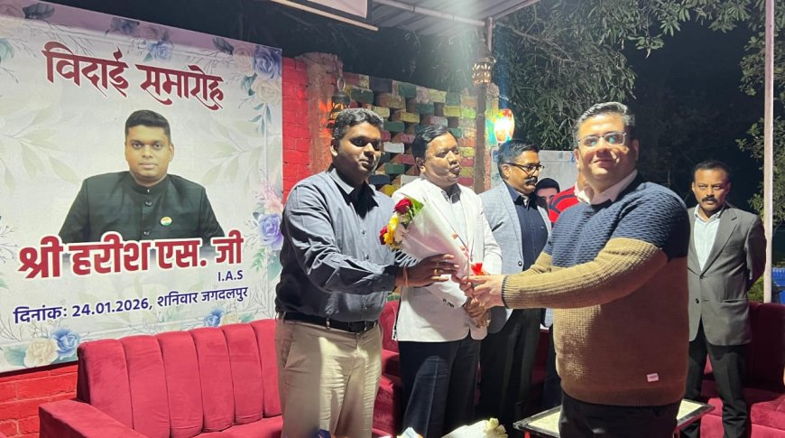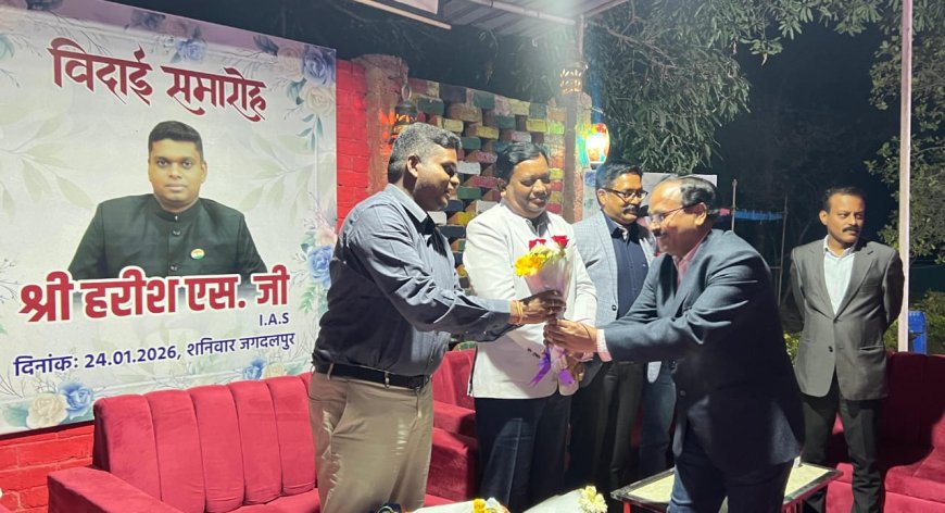 जगदलपुर, 25 जनवरी 2026/ जगदलपुर के करकापाल स्थित नगर सेनानी कार्यालय परिसर में आयोजित कार्यक्रम में जिले के निवर्तमान कलेक्टर श्री हरिस एस. को जहां आत्मीय विदाई दी गई, वहीं नव पदस्थ कलेक्टर श्री आकाश छिकारा का गर्मजोशी के साथ स्वागत किया गया। कार्यक्रम में वरिष्ठ प्रशासनिक और पुलिस विभाग के अधिकारियों की मौजूदगी ने इस अवसर को और भी गरिमामयी बना दिया।