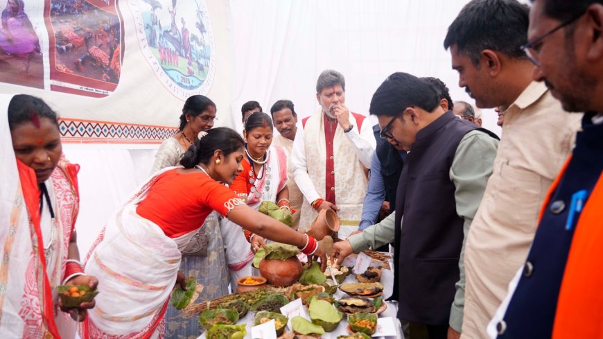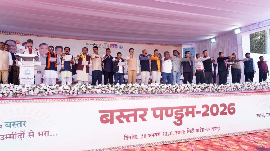जगदलपुर, 28 जनवरी 2026/बस्तर की आदिम संस्कृति, पारंपरिक खानपान और अनूठी जीवनशैली को सहेजने के उद्देश्य से आयोजित हो रहे 'बस्तर पंडुम 2026' के जिला स्तरीय महोत्सव का बुधवार को जगदलपुर के सिटी ग्राउंड में आयोजन किया गया । मांदर की थाप और लोकगीतों की गूंज के बीच आयोजित इस गरिमामय समारोह की शुरुआत सांसद श्री महेश कश्यप, जगदलपुर विधायक श्री किरण सिंह देव, चित्रकोट विधायक श्री विनायक गोयल और महापौर श्री संजय पांडे सहित अन्य जनप्रतिनिधियों ने बस्तर की आराध्य देवी माँ दंतेश्वरी के छायाचित्र के समक्ष दीप प्रज्ज्वलित कर की।