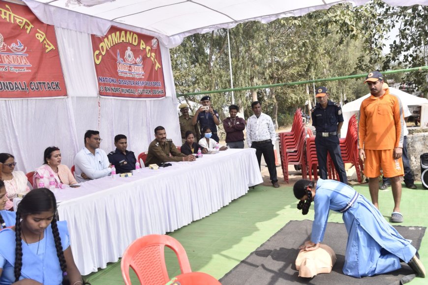 रेस्क्यू ऑपरेशन के बाद जीवन बचाने की यह मुहिम तट पर भी जारी रही, जहाँ पानी से बाहर निकाले गए व्यक्ति की जान बचाने के लिए सबसे महत्वपूर्ण प्रक्रिया सीपीआर देने का वैज्ञानिक तरीका समझाया गया। इस प्रशिक्षण को और अधिक व्यावहारिक बनाने के लिए वहां मौजूद एक स्थानीय विद्यार्थी को आगे बुलाया गया, जिसने जवानों के मार्गदर्शन में डमी पर सीपीआर का सटीक प्रदर्शन कर यह साबित किया कि अब नई पीढ़ी भी आपदा से निपटने के लिए तैयार हो रही है। इस अवसर पर कटक स्थित एनडीआरएफ की तीसरी बटालियन के डिप्टी कमांडेंट श्री पवन जोशी, डिप्टी कलेक्टर श्री सतेंद्र बंजारे और नगर सेनानी श्री संतोष मार्बल सहित बड़ी संख्या में शिक्षकगण व विद्यार्थी उपस्थित रहे। अधिकारियों ने इस बात पर जोर दिया कि आपदा कभी बताकर नहीं आती, इसलिए तैयारी में कोई कमी नहीं होनी चाहिए। दलपत सागर में हुए इस सफल आयोजन ने नागरिकों के मन में यह गहरा विश्वास जगाया है कि कुदरत की किसी भी चुनौती से निपटने के लिए उनके प्रहरी पूरी तरह सजग और सक्षम हैं।