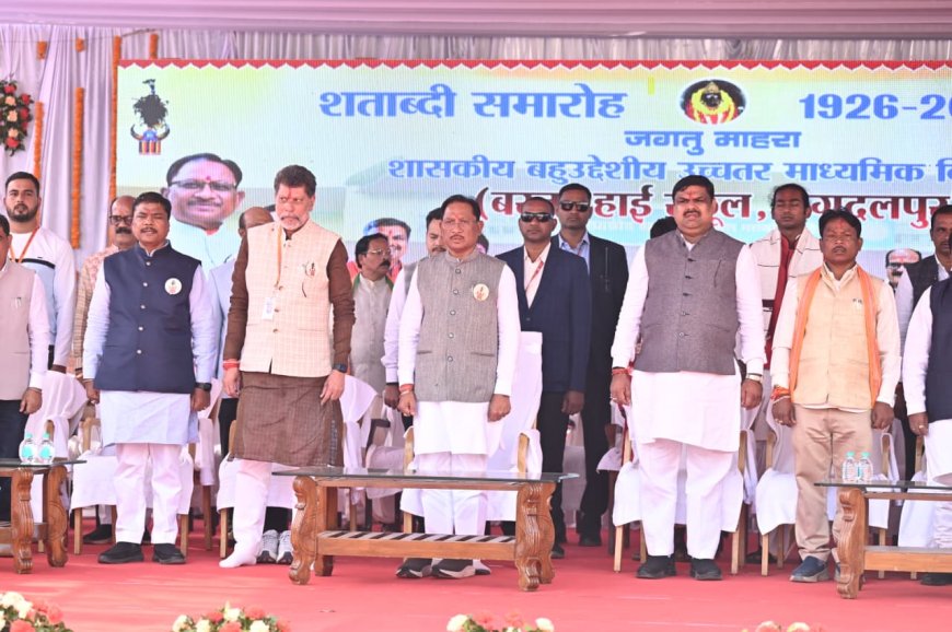 इस अवसर पर मुख्यमंत्री श्री विष्णुदेव साय ने जगतु माहरा शासकीय बहुउद्देश्यीय उच्चतर माध्यमिक विद्यालय जगदलपुर में शताब्दी समारोह पट्टिका का अनावरण किया। साथ ही स्वर्गीय ठाकुर देवेन्द्र सिंह और स्वर्गीया श्रीमती शारदा ठाकुर के स्मृति में दो स्मार्ट क्लास का लोकार्पण किया। मुख्यमंत्री श्री साय ने इस मौके पर विद्यालय परिसर में एक पेड़ मां के नाम परिजात प्रजाति के पौधे का पौधरोपण भी किया। वहीं शताब्दी समारोह के ध्वजारोहण सहित विद्या दायिनी मां सरस्वती के चित्र के समक्ष दीप प्रज्वलित कर विद्यालय के शताब्दी समारोह का विधिवत शुभारंभ किया। इस दौरान विद्यालय के स्मारिका का विमोचन किया गया।मुख्यमंत्री ने बेवरेज कॉर्पोरेशन के अध्यक्ष श्री श्रीनिवास राव मद्दी के पिता की स्मृति में आयोजित न्योता भोज कार्यक्रम में स्कूली बच्चों को भोजन परोसा। इसके अलावा जगतू माहरा बस्तर हाईस्कूल के सात पूर्व छात्र जो पुलिस और सुरक्षा बल में कार्यरत रहे जो सेवा अवधि में शहीद हुए। उनके छायाचित्र में मुख्यमंत्री श्री विष्णुदेव साय ने पुष्प अर्पित कर उन्हें श्रद्धांजलि अर्पित की।