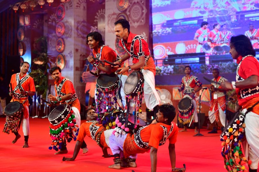 सांस्कृतिक संध्या का मुख्य आकर्षण अन्य प्रदेशों से आए जनजातीय दलों की मनमोहक प्रस्तुतियां रहीं, जिन्होंने दर्शकों को अपनी कुर्सियों से बंधे रहने पर विवश कर दिया। मंच पर जैसे ही पड़ोसी राज्य मध्य प्रदेश के कलाकारों ने 'गुदुम बाजा नाच' की थाप छेड़ी, वाद्य यंत्रों की गूंज से पूरा वातावरण ऊर्जा से सराबोर हो गया। इस जोश के बीच आंध्र प्रदेश की 'डिमसा' नृत्य की लय और सामूहिक पद-संचालन ने दर्शकों को एक अलग ही दुनिया की सैर कराई।