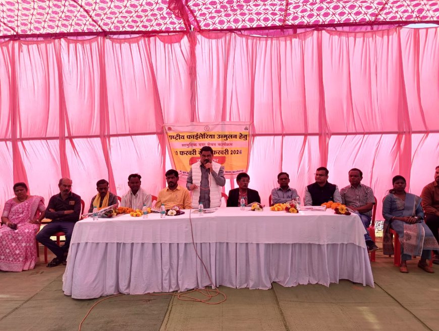 10 फरवरी 2026,जगदलपुर/ग्राम पंचायत धर्माऊर में आज राष्ट्रीय फाइलेरिया उन्मूलन कार्यक्रम के अंतर्गत सामुदायिक दवा सेवन अभियान का विधिवत शुभारंभ किया गया। इस महत्वपूर्ण स्वास्थ्य अभियान का शुभारंभ क्षेत्रीय विधायक माननीय श्री विनायक गोयल जी के कर-कमलों द्वारा किया गया। कार्यक्रम का उद्देश्य फाइलेरिया जैसी गंभीर और दीर्घकालिक बीमारी को जड़ से समाप्त करना तथा ग्रामीणों को स्वस्थ जीवन प्रदान करना है।