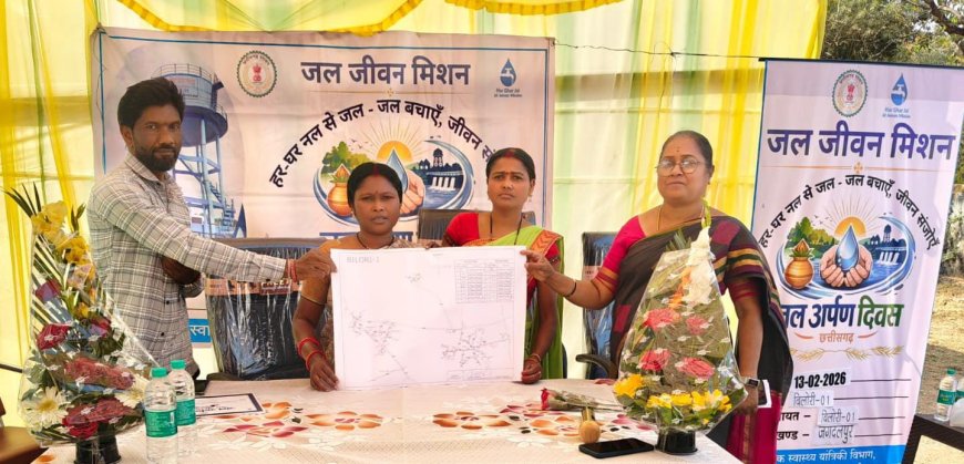 जगदलपुर, 13 फरवरी 2026/ लोक स्वास्थ्य यांत्रिकी विभाग के तत्वावधान में आज जिला बस्तर के ब्लॉक जगदलपुर अंतर्गत ग्राम पंचायत बिलोरी-1 में जल अर्पण दिवस का आयोजन किया गया। इस विशेष अवसर पर न केवल जल संरक्षण के प्रति जागरूकता निर्मित की गई, बल्कि भविष्य के बेहतर जल प्रबंधन हेतु ग्राम के पाइपलाइन का विस्तृत नक्शा भी प्रदर्शित किया गया।,