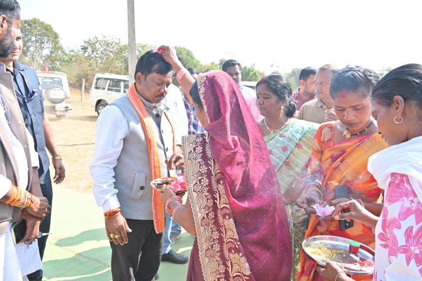 कार्यक्रम का औपचारिक शुभारंभ माँ दंतेश्वरी और छत्तीसगढ़ महतारी के तैलचित्र पर दीप प्रज्वलन और माल्यार्पण के साथ हुआ। इस अवसर पर बालेन्गा और आसपास के ग्रामीणों ने सांसद कश्यप का पारंपरिक रीति-रिवाजों के साथ पुष्प वर्षा कर भव्य आतिथ्य सत्कार किया।