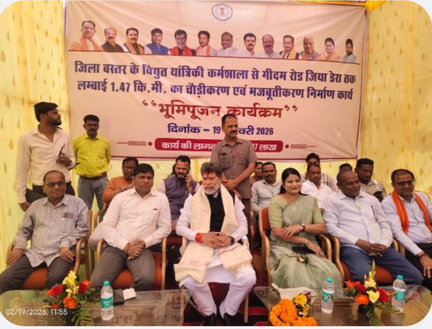 जगदलपुर, 19 फरवरी 2026/ बस्तर के हृदय स्थल जगदलपुर में बुनियादी सुविधाओं के विस्तार और यातायात व्यवस्था को सुगम बनाने की दिशा में एक महत्वपूर्ण अध्याय जुड़ गया है। शहर की व्यस्ततम सड़कों में से एक, विद्युत यांत्रिकी कर्मशाला से जिया डेरा गीदम रोड तक प्रस्तावित सड़क चौड़ीकरण एवं मजबूतीकरण निर्माण कार्य का भव्य भूमिपूजन गुरुवार को किया गया। इस विकास कार्य की आधारशिला जगदलपुर विधायक श्री किरण देव ने अन्य अतिथियों की गरिमामयी उपस्थिति में विधिवत पूजा-अर्चना के साथ रखी।