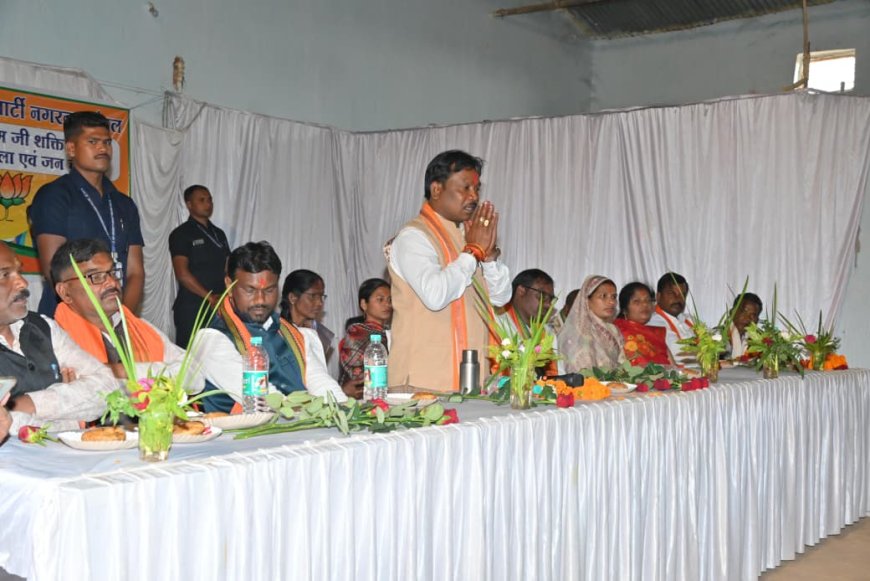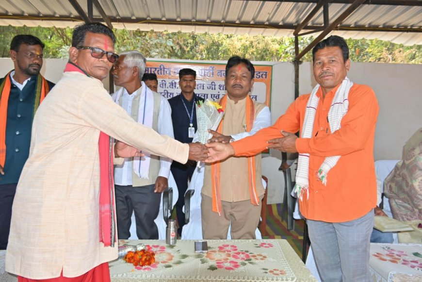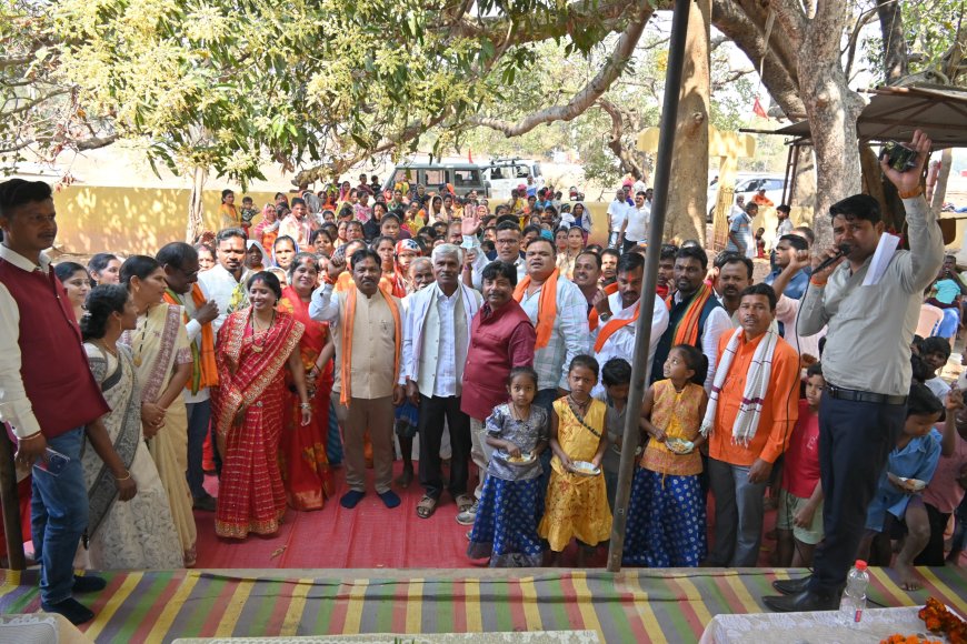 19 फरवरी 2026,जगदलपुर/ भारतीय जनता पार्टी द्वारा संचालित 'जन चौपाल' अभियान के तहत आज नगरनार के नकटी सेमरा और धुरगुड़ा शक्ति केंद्र में आयोजित कार्यक्रम में बस्तर सांसद महेश कश्यप मुख्य अतिथि के रूप में शामिल हुए। पारंपरिक बस्तरिया वाद्ययंत्रों की मधुर गूंज के साथ सांसद का आत्मीय स्वागत किया गया।