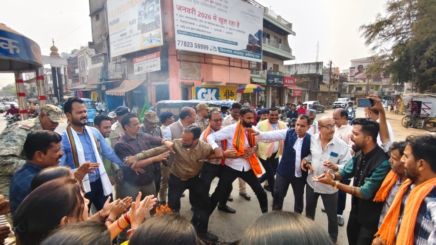 जगदलपुर/ ए आई समिट में कांग्रेसियों कार्यताओं द्वारा किए गए आपत्तिजनक अर्धनग्न प्रदर्शन के बिरोध में भाजपा किसान मोर्चा जिला बस्तर अध्यक्ष योगेश ठाकुर के नेतृत्व में गुरुनानक चौक जगदलपुर में पुतला दहन किया गया