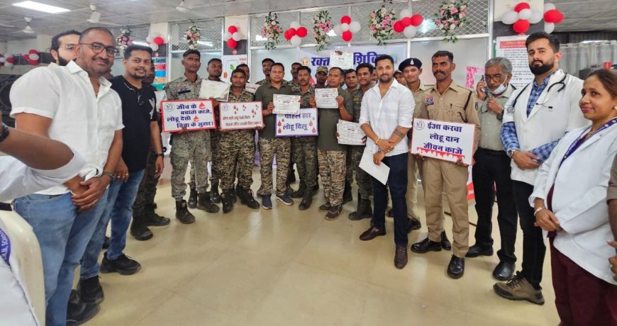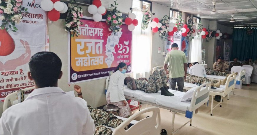 जगदलपुर, 28 फरवरी, 2026/ स्वास्थ्य विभाग द्वारा शनिवार को महारानी अस्पताल जगदलपुर में जूनियर चैंबर ऑफ कॉमर्स एंड इंडस्ट्रीज के सहयोग से एक विशाल रक्तदान शिविर का आयोजन किया गया। यह रक्तदान शिविर सुबह 11 बजे से शाम साढ़े 04 बजे तक चला, जिसमें पुलिस जवानों, युवाओं और नागरिकों ने बढ़-चढ़कर हिस्सा लिया।